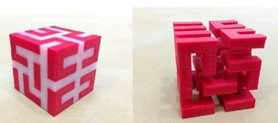 Двойной экструдер особенно полезен при создании сложных моделей с нависающими частями: опорные элементы можно напечатать из водорастворимого материала и просто удалить после печати.