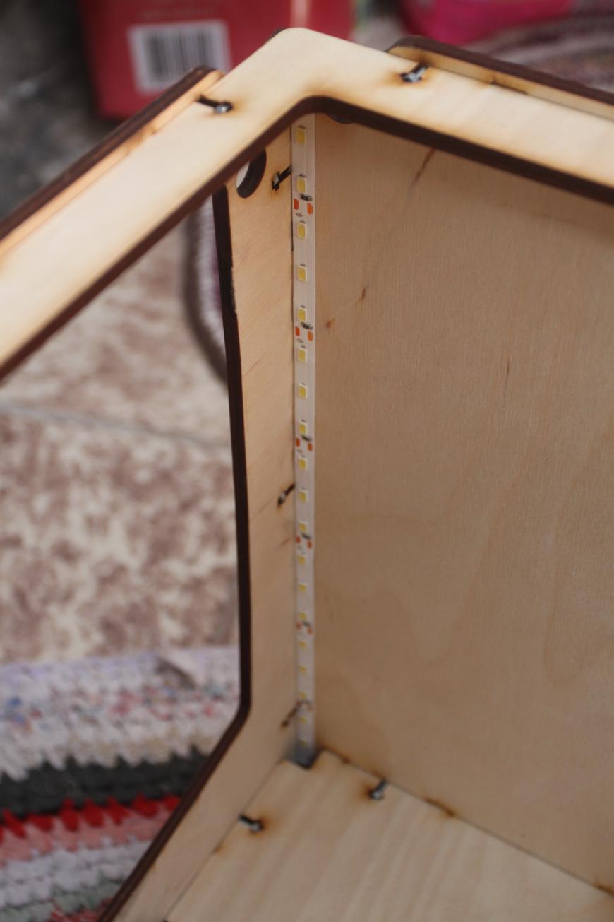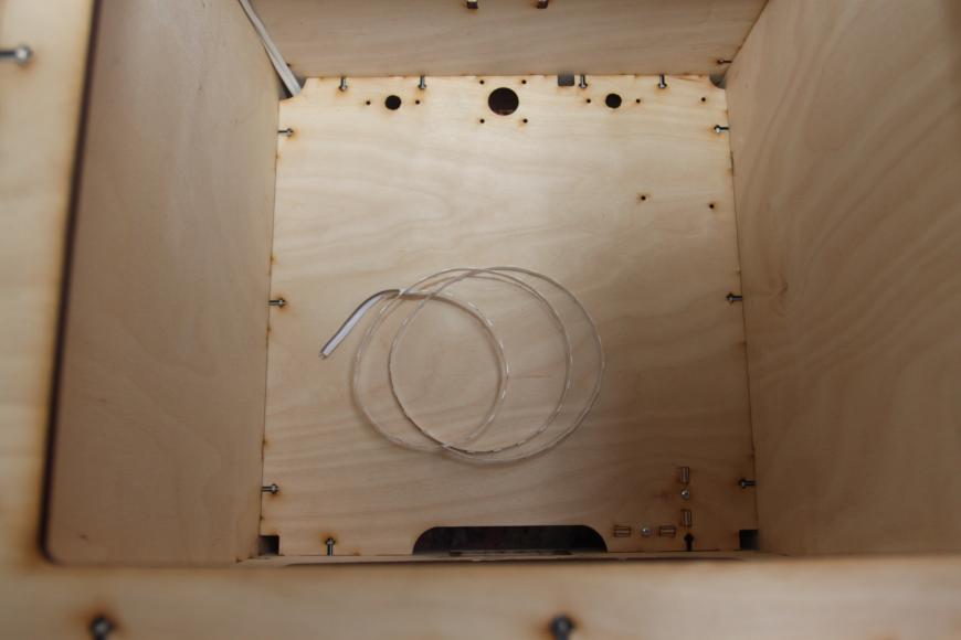 Наклеиваем светодиодную ленту внутри принтера, вдоль передней кромки, на правую, левую и верхнюю панель.