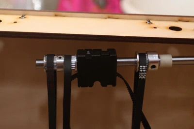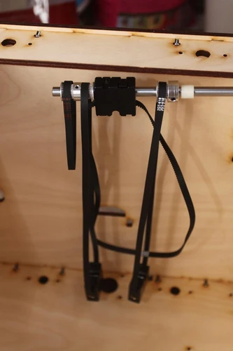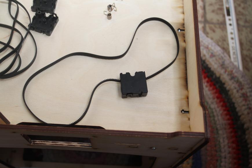 - Шпуля, винтами влево, на шпуле ремень каретки, которая надета на дальнюю ось,