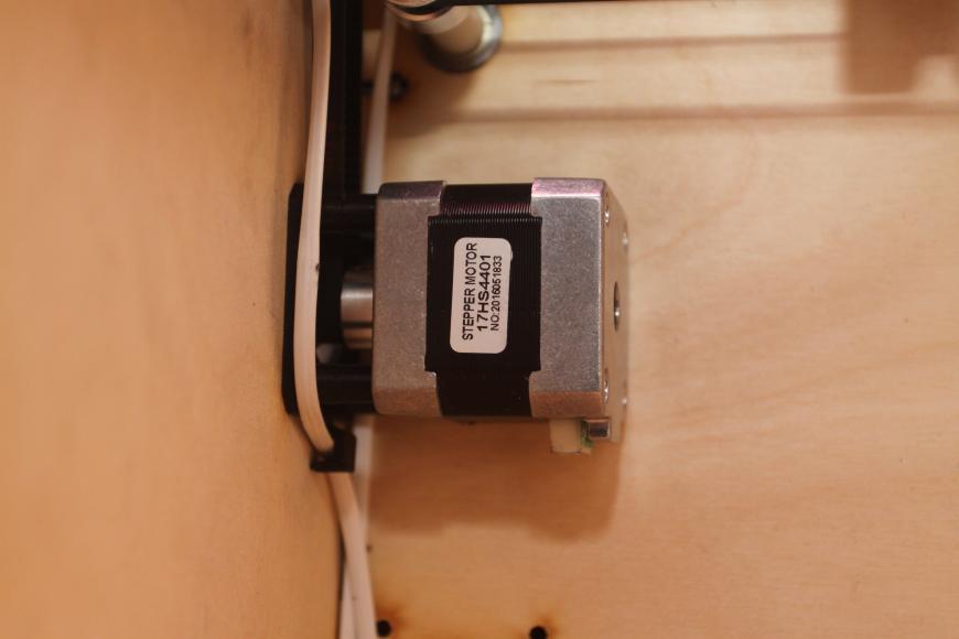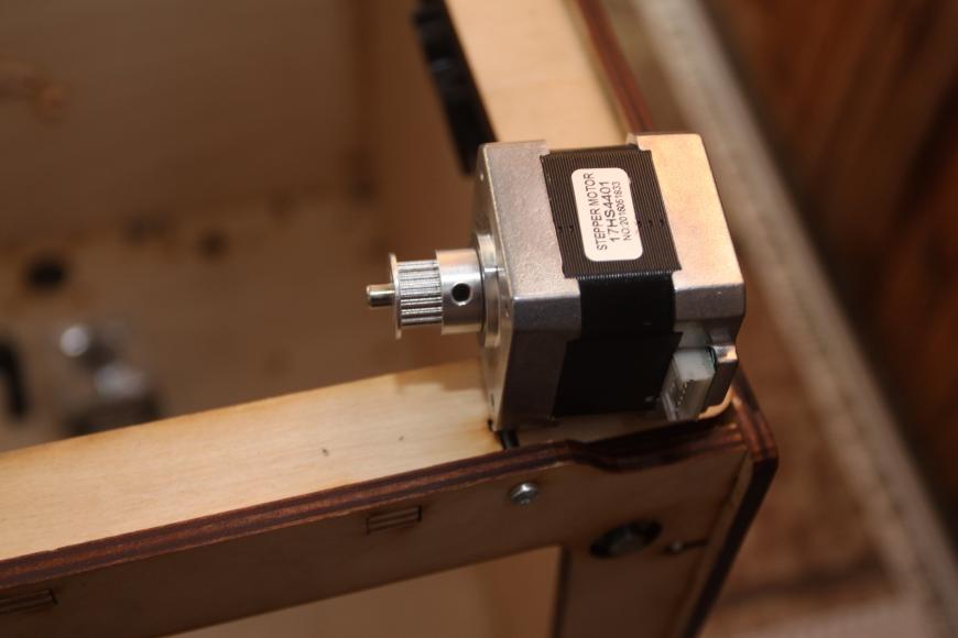 Вкручиваем трапециидальный винт в гайку, установленную на столе и фиксируем винтами двигатель к корпусу: