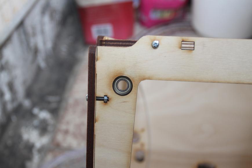 Сверху корпуса в отверстия вставляем валы, надеваем на их стол, и ставим до упора в заглушки.