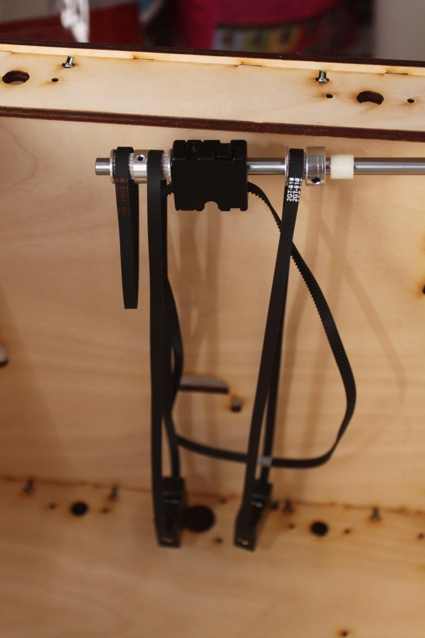 - двойная шпуля, на шпуле сначала короткий ремень, который пойдет к двигатели, и длинный ремень, кареткой снизу