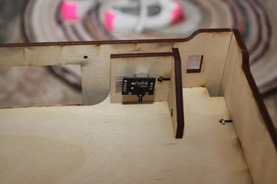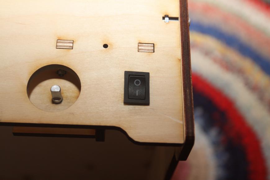 - устанавливаем верхнюю панель мировыключателем внутрь корпуса слева.