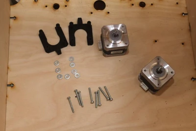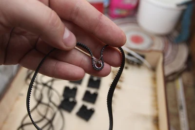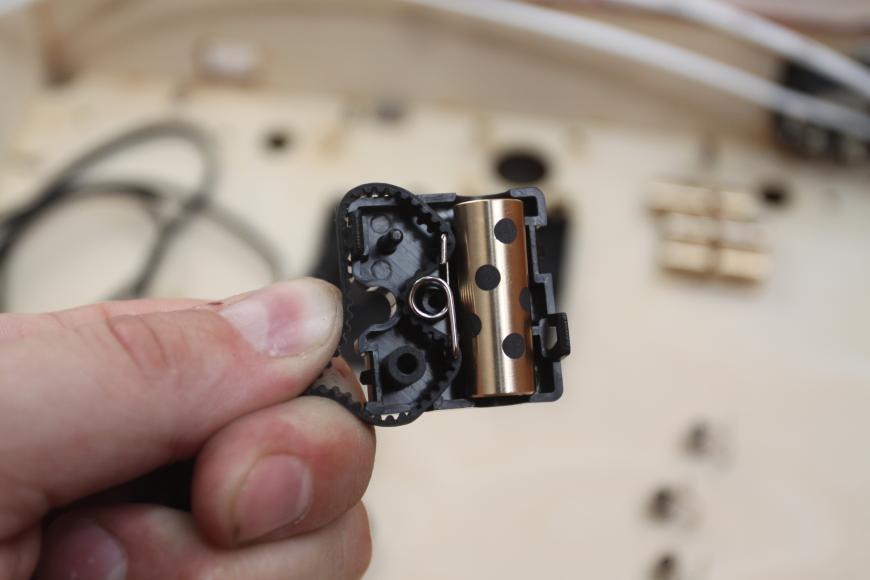 Прикручиваем двигатели используя шайбы и кронштейн, маленький ремень надевается на шпулю и натягивается.