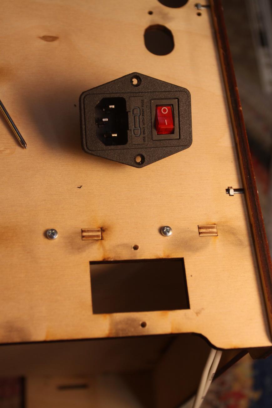 - Устанавливаем разъем для подключения кабеля питания с предохранителем и выключателем в корпус принтера.