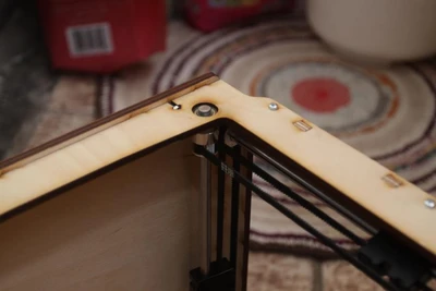 - устанавливаем правую панель ножками к себе, круглым отверстием сверху, которое ближе к краю, влево.
