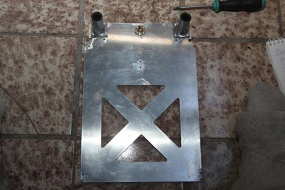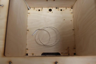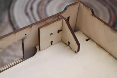 - Заднюю панель кладем на стол ножками к себе, овальным отверстием под двигатель вправо.