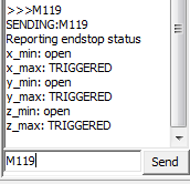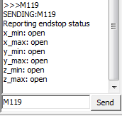 Дальше идёт настройка концевых выключателей. Нам нужно узнать где они расположены. Как это узнать? Начало координат находится в ближнем левом углу на поверхности стола, если сопло вывести в эту точку, то сработали бы концевики MIN, если в правую дальнюю верхнюю - сработают MAX. У меня в положении HOME находятся три концевых выключателя MAX, поэтому мои установки