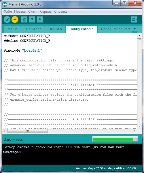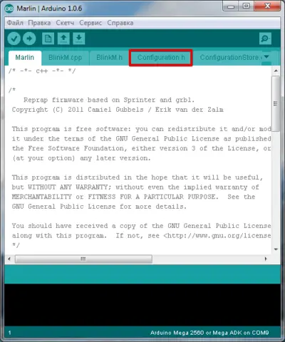 Открывается среда Arduino IDE с прошивкой. Нам нужна вкладка Configuration.h.