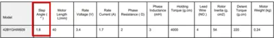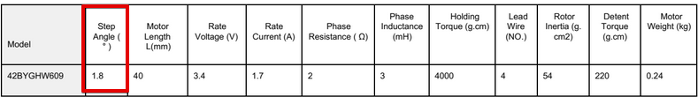 Находим спецификации (даташит) на установленные шаговые двигатели. Видим, что за один шаг вал поворачивается на 1,8 градуса, а это значит 360/1,8=200 шагов на полный оборот. Этот параметр одинаковый у большинства шаговых двигателей устанавливаемых в домашние 3D принтеры.