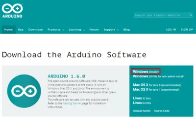 Теперь скачиваем Arduino IDE для исправления и загрузки прошивки в 3D принтер. Ссылка. Давим на Windows Installer. Скачивается установщик arduino-1.6.0-windows.exe. Запускаем его и устанавливаем среду Arduino IDE.