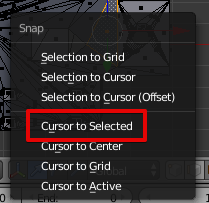 Переносим на неё 3D курсор, нажимая Shift+S и выбираем Cursor to Selected.