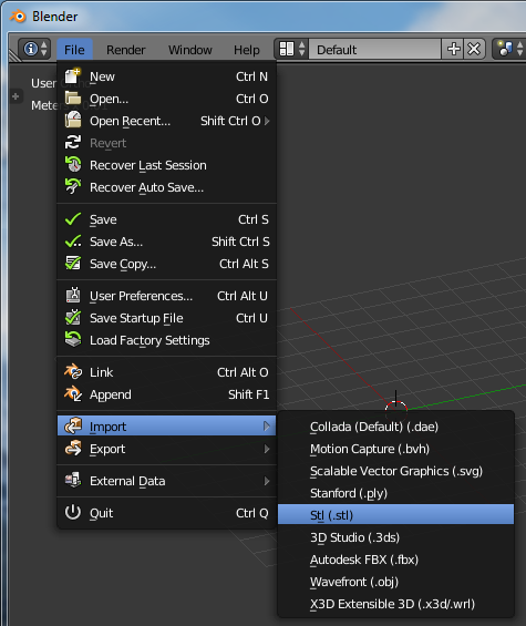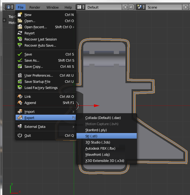 Выделяем клавишей A оба объекта и экспортируем обратно в STL модель. Для дальнейших правок нужно сохранить проект в формате .blend (Ctrl+S).