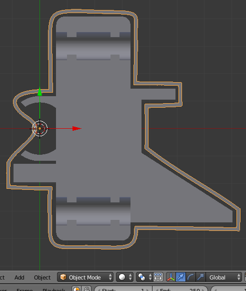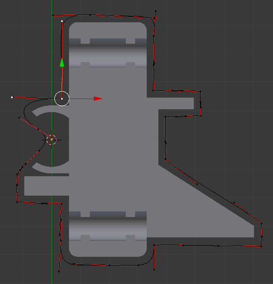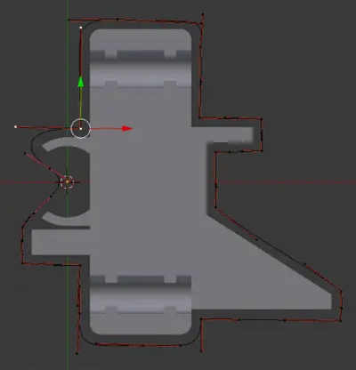Для изготовления стенки нужно нарисовать контур вокруг модели. Используем кривые Безье. Начальная точка моделирования обозначена 3D курсором.